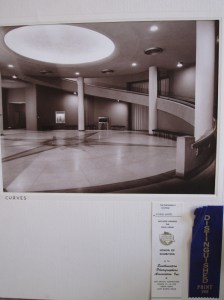 One of three photos is titled “Curve” by Gordon Smith, with not only the Smith Photographs label on the back but also the Gold Award label from the 28th Annual Convention of the Southwestern Photographer’s Association in 1955. I have not found the exact location of this hall interior but would guess it may be the original Charlie Mary Noble Planetarium interior which was completed within one year before the photo was taken. Although I have never been to the Fort Worth Museum of Science and History, a quick search showed a recent upgrade on the building, indicating that maybe this is another photograph of the past.