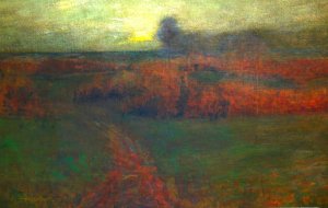 Then came the late Inness, whose canvases have nothing solid and everything seems to be floating and out of focus. The lack of focus points forces the eyes to view the canvases in the whole, which were usually painted in a unified hue. Henry Ward Ranger started the painting with a special brownish varnish to which he attributed the magic glow inhis autumnal landscapes. Other painters like Dwight Tryon or John Francis Murphy used limited pallet with subdued colors. Quite often, the picture is medium dark, almost bordering murkiness. In viewing these pictures, the consciousness of audience has naturally changed from grasping what is offered in Hudson River school paintings to examine what can be explored in Barbizon paintings; in other words, our minds search instead of catch.