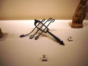 In the ad, the identity of the bronze statue is a Divine Consort of Amum, a religious official post usually held by a female member of the royal family. I have seen a picture of Queen Karomama from the Louvre. The dress and the short wig are similar to this statue and appropriate to the period, but the details of the floral collar and the embroidered gown on the queen are far more stunning while this one is quite plain. As usual, the sistra that she is supposed to hold in both hands are missing.