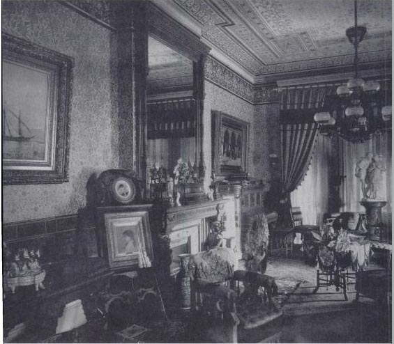 Entering the hall decorated with encaustic tile floor, the arrangement of the rooms is similar to that of the Ballatine house in Newark Art Museum: On the left is the library and right is the parlor. The library is decorated with ebony furniture. Oriental motifs mingle with Italian-style tile inset. The notion of affluence and social status in the Victorian period is not only apparent in the quality, but also in the quantity and cosmopolitan assembly of everything that was popular. But other rooms, probably redecorated by the museum, show a more consistent decorative style that began to appear in the mid-1880s. I was fascinated by the parlor room which was unified by the color and patterns used in wallpaper, ceiling stencils and fabrics. It is reported that Trevor brought Leissner and Louis to complete the ornate ceiling stencils and Daniel Pabst to create the mantels and a dining room sideboard. All were photographed by the brother of Albert Bierstadt, Edward Bierstadt in the book “Homes on the Hudson” published in 1885.