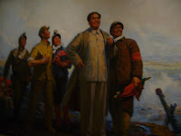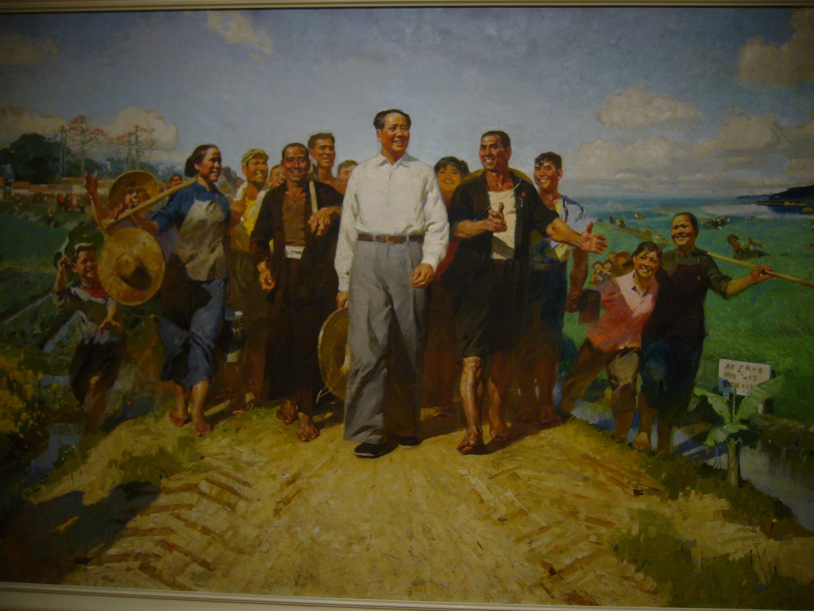 However, what strikes me the most was most of the paintings were historical paintings and depict events and movement that led to the Cultural Revolution. In one example, a painting praised the fruit of the “Great Leap Forward” movement with Mao in the field of experimental wheat field. In another, Mao was with the coal miners including a female worker. These were painted by the same painters who, during the first three years of the 1960’s, read in starvation the news of new record of unit field production from the newspaper daily, the same painters who lost their wok because all irons went to some backyard steel furnace. They became waste since regular people didn’t know the metallurgy, but the waste was still counted as the national steel production in order to catch up with Britain in 15 years.