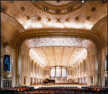 Although the exterior of Severance Hall was designed to complement the Art Museum in neoclassical form, from the entrance lobby to the auditorium room, the style gradually transitions to Art Nouveau and Art Deco. In 1958, when facing the trade-off between aesthetic beauty and acoustic integrity, George Szell sided with the latter, putting his famous “Szell shell” over the stage which visually confronted the Art Deco interior. Today those ugly modern Szell shells have been replaced by material both visually and acoustically satisfying. But most of all, the glory and the history of the architecture are preserved with the ever-growing orchestra. Concertgoers, when entering the grand main lobby and seeing the restored shimmering golden hall, will surely agree with Alburn’s assertion that “Severance Hall is one of those singular and complete triumphs which come to an American community infrequently, if ever”.