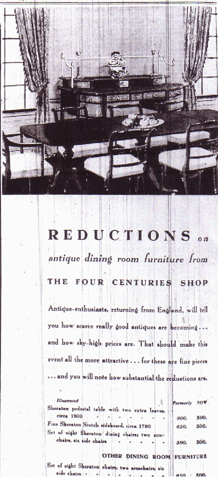 I was searching through a 1937 edition of the New York Times this afternoon when I came across an ad for antique furniture.