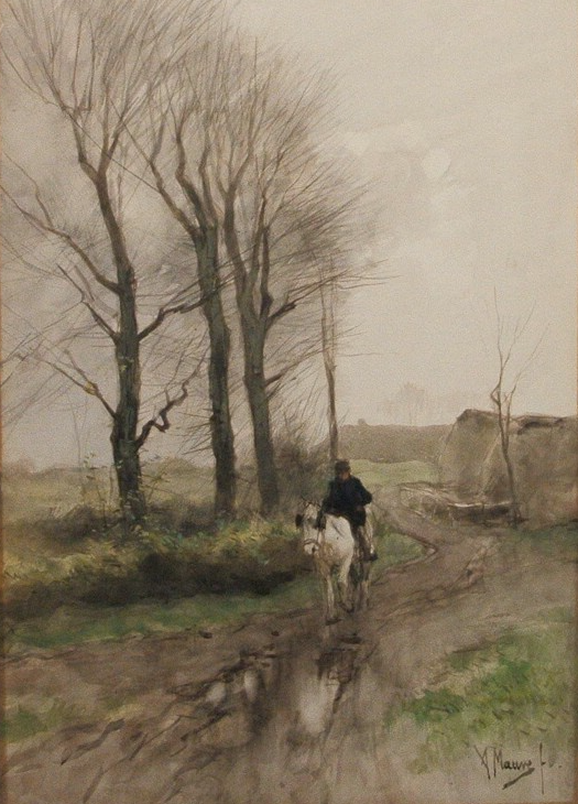 The star lot which stunned me the most is a watercolor painting by Anton Mauve. The Hague School is gaining recognition outside the Netherlands in the past years. Henry Ward Ranger, who painted with Anton Mauve, regarded the group of Dutch painters in the last two decades of 19th century as the linear successors of the French Barbizon School. But beside the overall gray subdued tonality, the works have a more romantic nostalgia compared to French masters. While Israels would put the anonymous figures in the center of the canvas, the figures in Mauve’s paintings like this water-color gem is surrounded by (or more precisely isolated to) a world of simplicity void of subsidiary details. In this landscape, the human and nature are in a stark unity emerging out a world of sombre melancholy, alienated from the mundane reality.