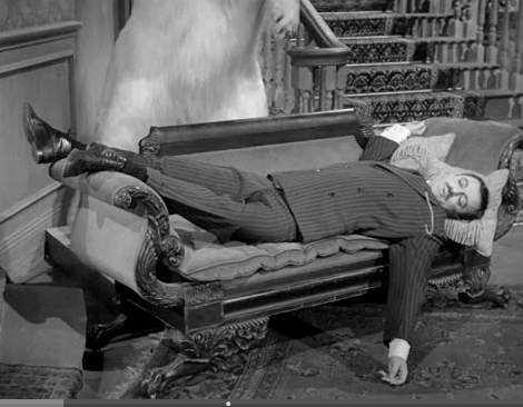 The Addams Family is set for a run on Broadway where character Wednesday will turn 18 and deal with getting a boyfriend. The original creation of the Addams family was of course on television in the 1960s with a set containing numerous curiosities in a Second-Empire mansion. One of these is an Empire-style sofa I noticed while watching an episode on Hulu.com. I captured a screenshot and set out for a discussion on a LinkedIn group. My first reaction was that the good carving made it a “period” sofa, probably from New York that somehow made it to California and onto the set. There were signs it may not be period, a thin crest rail in the back is one, but the four carved feet nudged me toward the idea that it could be period.