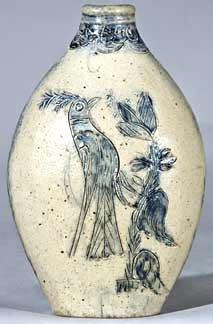 I must not be the only one, who, after aisles and aisles of walking in a large antique mall, develop an illusion that every booth looks similar. As a flatware collector, almost unconsciously I will begin to skip booths filled with colored glass bottles and stoneware. The latter are always tucked on the floor, near the corners so that people may not kick them over. Thus I seldom noticed them until very recently when the antique week and Maine Antique Digest brought out their auction values. I begin to wonder: Did I ever pass such ten-grand worth vessels? And I even begin to fancy that, perhaps next time if I look, I would pick up a humble looking one and make an antique roadshow purchase.