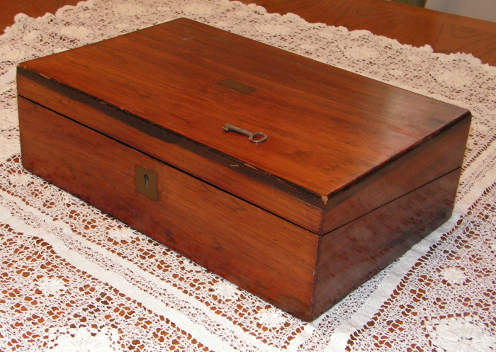 The history of the laptop extends back farther than you may suspect. These writing desks for travelers were used throughout Victorian times. I’m not sure how useful they are today as few write letters anymore, but I had the notion to use one for addressing holiday cards. The cards could be kept inside and opened once a year ceremoniously. I also like to make personalized cards with stamps and photos attached and a portable writing desk would provide a great place to keep the stamps. Because they are not terribly useful, you can often find a really good one for not too much money. There are plenty on eBay, but don’t jump on a damaged one, wait for one in good condition with all the accessories including the ink bottles (and caps). Most have a place for a monogram, but some have never been engraved.