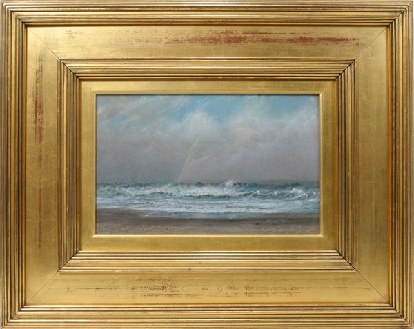 Tryon’s artworks, associated with a style usually called “quietism” or “quiet impressionism,” are less well known, partially due to the restriction of the Freer Gallery and the shift of focus in Smith College. But his works have been a blue chip and didn’t fluctuate very much during the recession. Tryon’s pastel works are very rare in the market and DuMouchelles’ location makes me wonder whether this work can be related to Charles Freer, his most important patron. Tryon was a master of the pastel media; in particular he found the use of pastel in seascape irresistible. In Linda Merrill’s book “An Ideal Country: Paintings by Dwight William Tryon in the Freer Gallery of Art,” the author said that the ocean provided inexhaustible opportunities for Tryon’s art, especially when observed at night. Tryon’s particular talent for the intangible is shown to advantage in evocations of the crepuscular effects of the eerie hours. When similar works were displayed in Gallery four of the Panama-Pacific International Exposition in San Francisco in 1915, Julian Alden Weir called them “peace reins supreme”.