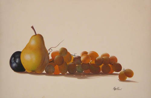 Mr. White’s fondness of still life with scientific objectivity extends to his selection of contemporary works. Lot 95, a still life of grapes, pear and plum by Indian artist Jaggu Prasad was meticulously painted and masterfully composed. The photo-realistic quietude together with a dimensionless floating surface has a psychological implication that seems to venerate the smooth surface of fruits beyond the edibility. Our search of familiarity becomes futile because our eyes are deprived of any supporting ground that has the gravity, color or texture to rest the eyes. Instead, here, we are forced to see the objects with elevated sensibility – a tradition carried on from those 19th century still life painters – for the pleasure from the pursuit of truth and beauty.