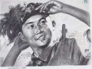 A provacative poem written on a drawing by Chinese artist Shen Liang failed to help propel the drawing to within its estimated price.  Lot 72216 offered at the Heritage Impressionist, Modern and Contemporary sale today brought just $500, well-short of the $1,000 to $1,500 estimate. The work was drawn after a Cultural-revolution-era poster, written in Chinese was the following poem: