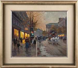 An oil on canvas Paris street scene by the renowned French painter Edouard Cortes (1882-1969), titled Boulevard des Capucines, sold for $34,500 at a two-session Fine & Decorative Arts Catalog Auction held June 19 by Leland Little Auction & Estate Sales.