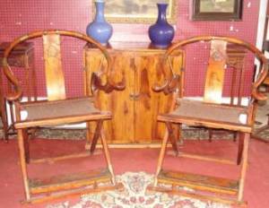 A pair of Huanghuali Chinese folding hunting chairs with hemp seats and brass trim sold for $26,880 at a sale of the estate of the late Dr. Kevin-John McIntyre, held June 12 by Finney’s Auction Service. The sale was held in Finney’s spacious gallery facility near Albany, NY.