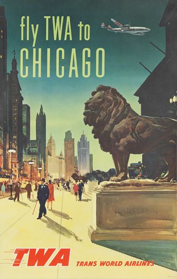 If travel posters have seen a great surge in demand because of their sensual beauty of natural or urban scenes, airline posters, still affordable in the vintage poster market, may call for a more determined mindset that sees that the virtue of these pictures also resides in old-fashioned loyalty. Surely you won’t want a United Airlines poster if you are the victim of a broken guitar.