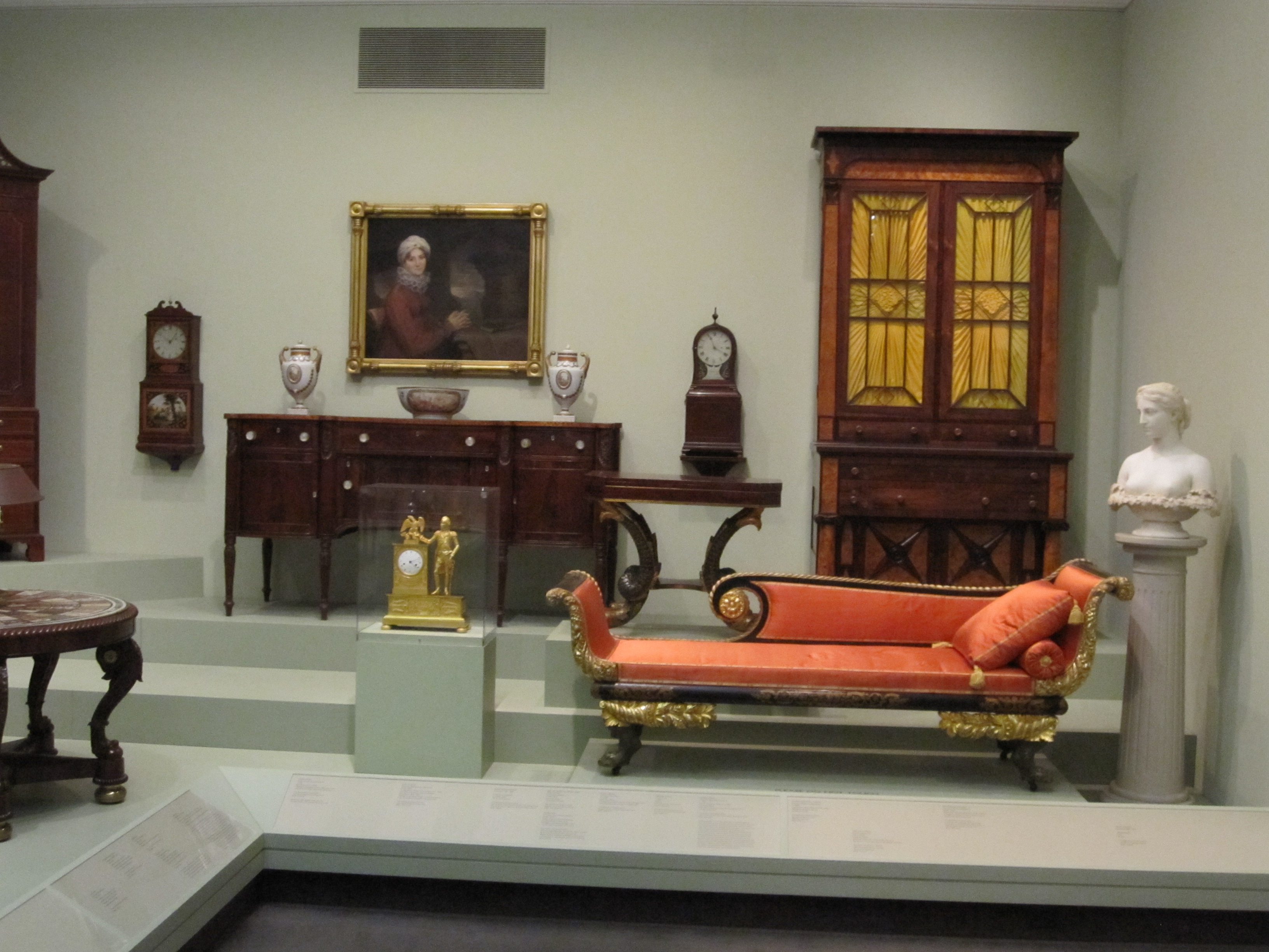 Finally, the galleries at the Baltimore Museum of Art provided a welcome break from the show. Here we are in this colonial city, and one thing very noticeable is the proportionate disparity of American art in the galleries of the museum and on the show floor. America is not looking at herself, or at her past for artistic inspiration and furnishings these days. Scattered around different floors, those Maryland period rooms are magnificent manifestation of the glorious history of the charm city. In the Waterloo Row’s parlor room, the detailed architecture cannot be overwhelmed by the fancy chairs around. Although the Catholic church designed by Benjamin, Latrobe, for whom Robert Mill worked as a clerk, still stands about 20 blocks south of the Museum, Robert Mill’s ten townhouses were erased in 1970’s for some urban housing projects, and the two rooms in the museum are his only surviving legacy. On one side of a fire place, a closet door opens, displaying small cabinet for decanters and wine glasses. I am wondering whether Matha Stewart may use this ingenious idea someday in her show.