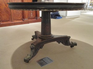 That didn’t keep us from having fun looking. The highlight for us at Sotheby’s may be a Baltimore table in the Empire style that is in poor condition and were it not once owned by President Franklin Delano Roosevelt may not bring much attention or even appear at Sotheby’s. The table was displayed with a photo showing its presence in Roosevelt’s Hyde Park Home. Finding furniture in original condition is one of the pieces of advice given by Hays at Christie’s in their September Bulletin and with missing veneer, trim and other damage, this table would certainly not qualify. But how many parlors have a major item not only owned by a president, but one of the most popular presidents?