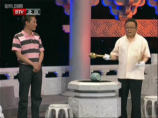 Yet, since it was launched on a Beijing TV Station, the program has been controversial as the hammer has smashed many objects brought to the studio. Some people think the final act, with its physical impact, unnecessarily hurts the enthusiasm of the ordinal collectors, if not destroys the dreams of the families. Others think too much time is given to gossiping of pop stars whose comments are not educational or informative. A few criticize the sledgehammer as an emblem of the program’s anxiety and insecurity to fight for the ratings– not much better than those treasure hunters who held high hope with their fake vases. (Why on earth does the show need a young lady holding a plate with the sledgehammer and walking to the host every time the final judgment is going to be pronounced? The answer: Some clothing company sponsors her beautiful Cheonsam.)