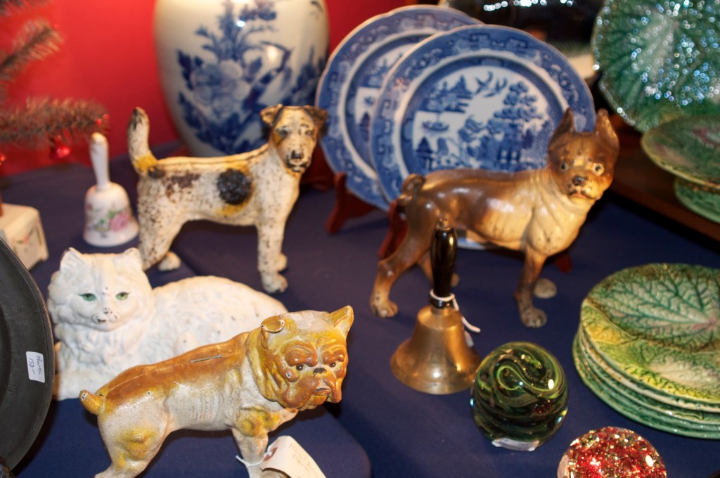 I think one of the easiest subject matters to tell stories about is animals. One dealer told me about his dog, Maverick. I thought about the story when I was at Sparrow’s Nest Antiques perusing the varied canine collectibles. I wondered how many of these dog sculptures were fashioned after family companions. If I squinted, I even thought one looked like my Griffy.