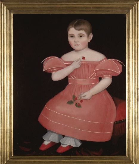2. Sotheby’s Jan 21 and 22, important Americana sale. Lot 303, Portrait of a rosy cheeked young girl in a pink dress by Ammi Phillips.