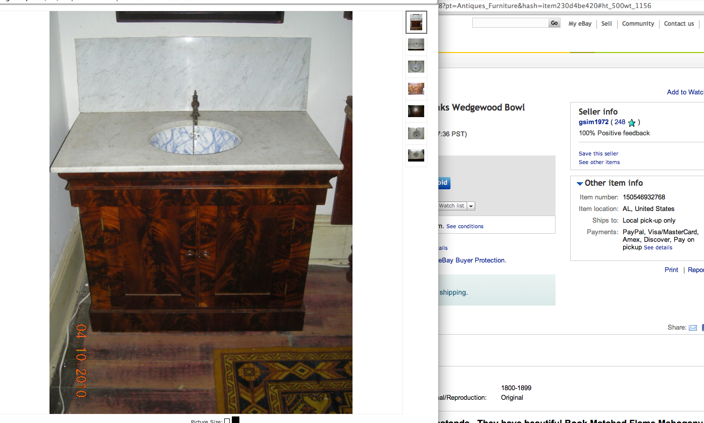 2.Pair of Empire Mahogany Marble top Sinks Wedgewood Bowl, ebay item 150546932768.