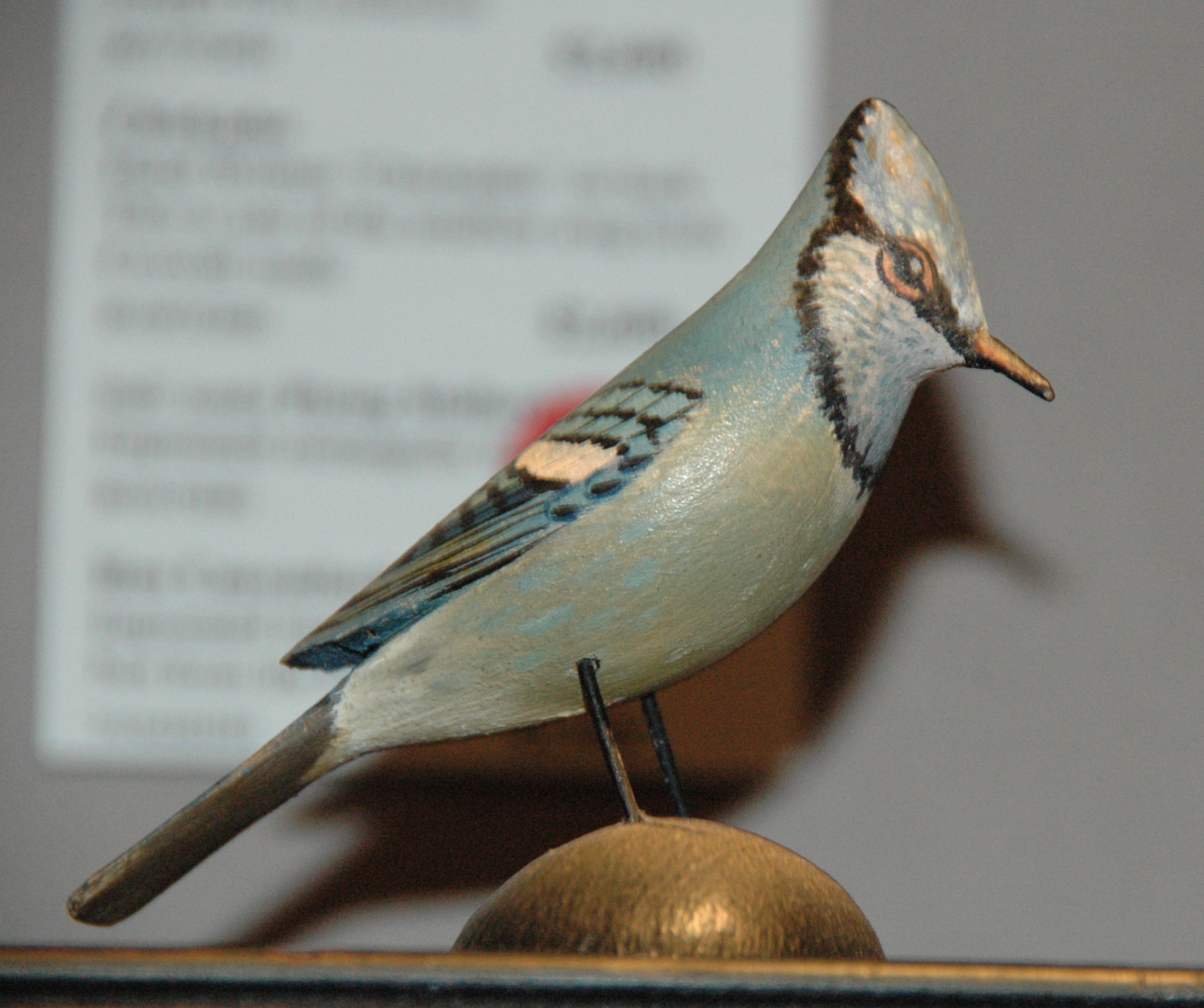 When all is said and done, there is always the wood, the artist, and the carving tools. Ron Bassin, the owner of A Bird in Hand Antiques, told of the master decoy carver, Elmer Crowell. Crowell specialized in shorebirds and waterfowl. The carving was only half of it; Elmer’s skills as a painter were evident in his subtle feathering and coloration. Ron impassioned-ly showed me what made a “Crowell” a “Crowell.” One darling bird carving couldn’t have been but two inches tall; the vibrant color, the lively eyes, the sheen on the feathers. Ron described Crowell as the “Rembrandt of Decoy Painting.”