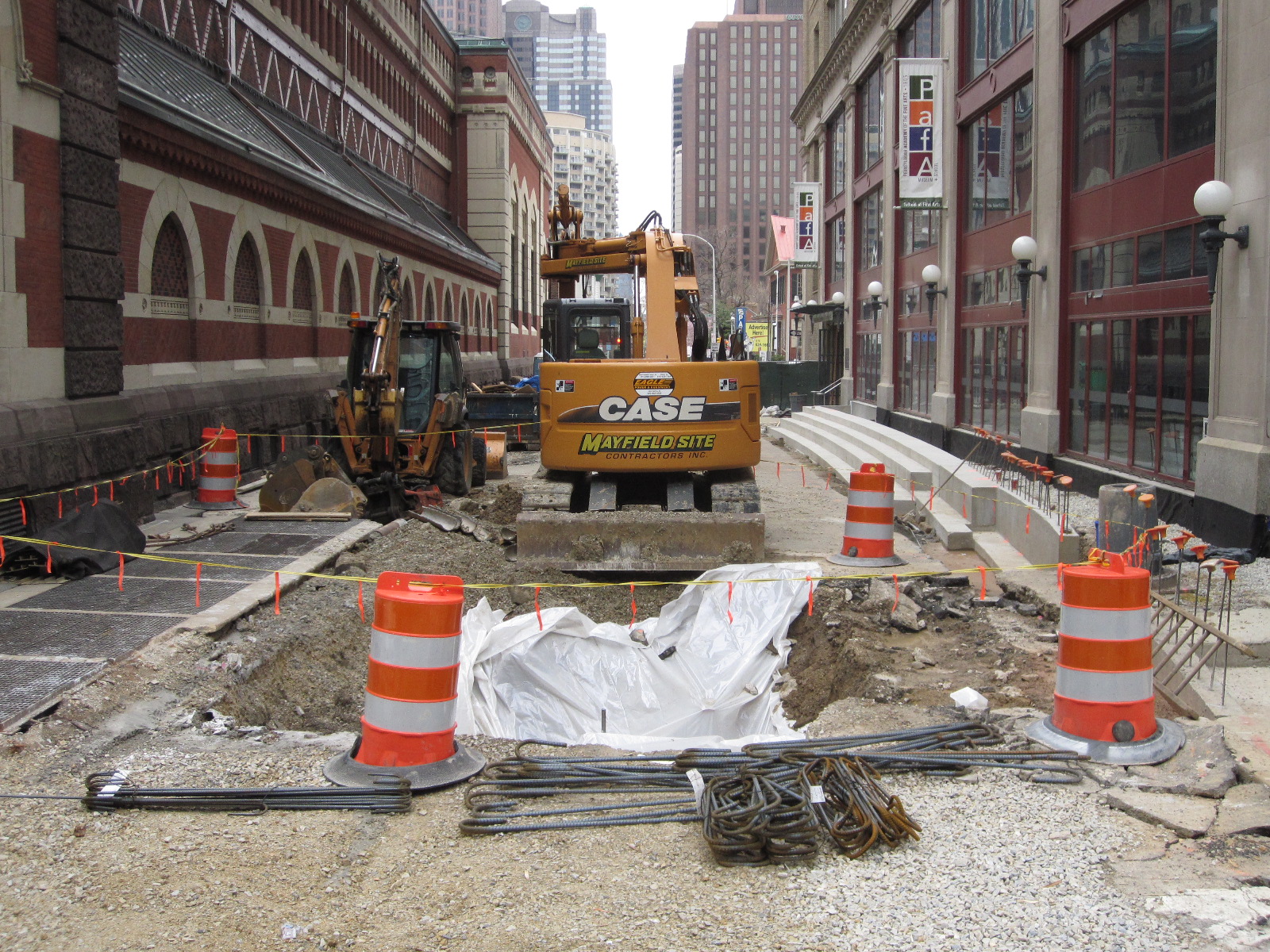 Philadelphia City Hall is a sculptural masterpiece itself and the city and its art radiate outward from there. A few short blocks away is PAFA, a treasure of a building designed by Frank Furness. Just outside this museum is where the Oldenburg sculpture is being erected. Unfortunately, there’s no sign of it yet, outside of the construction and a hole dug for the footers.
