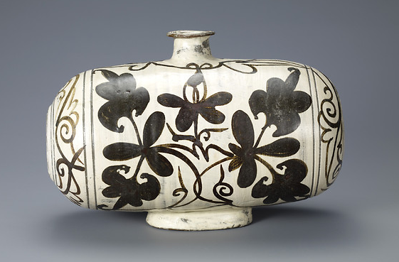 Peonies, for instance, could be conjured with a few fluid lines. A black lotus that pushes through white slip or a lotus blossom of reverse inlay that emerges from negative space could have been created today. In fact, there is a revival of the form today and the show’s curators have included examples of buncheong-inspired 21st Century ceramic art.