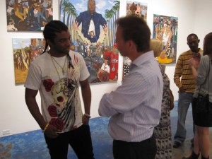 Our last stop is at UT Dallas Centraltrak gallery for the opening reception for Liquid Analog by Houston native El Franco Lee II. El Franco has the talent to pack more drama into canvases than what even Spike Lee can do with a two-hour movie. Some paintings would have to be rated as NR if MPAA stepped in. But the artist is not shamed by the vibrant colors, the showy dress or the violence – many facets associated with African American life. Together with these action packed pictures, one experiences his anger, protest and resignation.