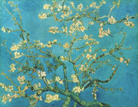 After unsuccessfully pursuing careers as an art dealer, teacher, and pastor, Vincent van Gogh (1853 –1890), prompted by his brother Theo, began to study art in 1880. In the Netherlands in 1885, he completed his first major works using a palette of browns, greens, grays, and blacks. A year later, his work underwent a striking shift when, arriving in Paris, he was confronted for the first time by the Impressionist paintings of Monet, Pissarro, Renoir, and by the new pointillist works of Seurat and others. These progressive artists inspired him to lighten his palette and modernize his brushstroke. At roughly the same time, van Gogh began to collect Japanese woodblock prints, fascinated by their vibrant color, high horizon lines, tilting perspectives, and truncated or unusually cropped edges. These influences encouraged van Gogh to experiment with a radical treatment of field and space, flattening and compressing the picture plane in his paintings in order to create a sense of shifting perspective and tension.