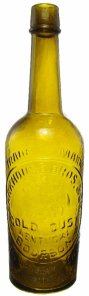 A Trademark Barkhouse Bros. & Co. Gold Dust Kentucky Bourbon bottle, one of the most popular western fifths and one of the finest known to exist, sold for $28,000 in an Internet and catalog auction held Dec. 9-18 by American Bottle Auctions. The bottle was the top seller of the 144 western whiskeys and historical flasks that changed hands.