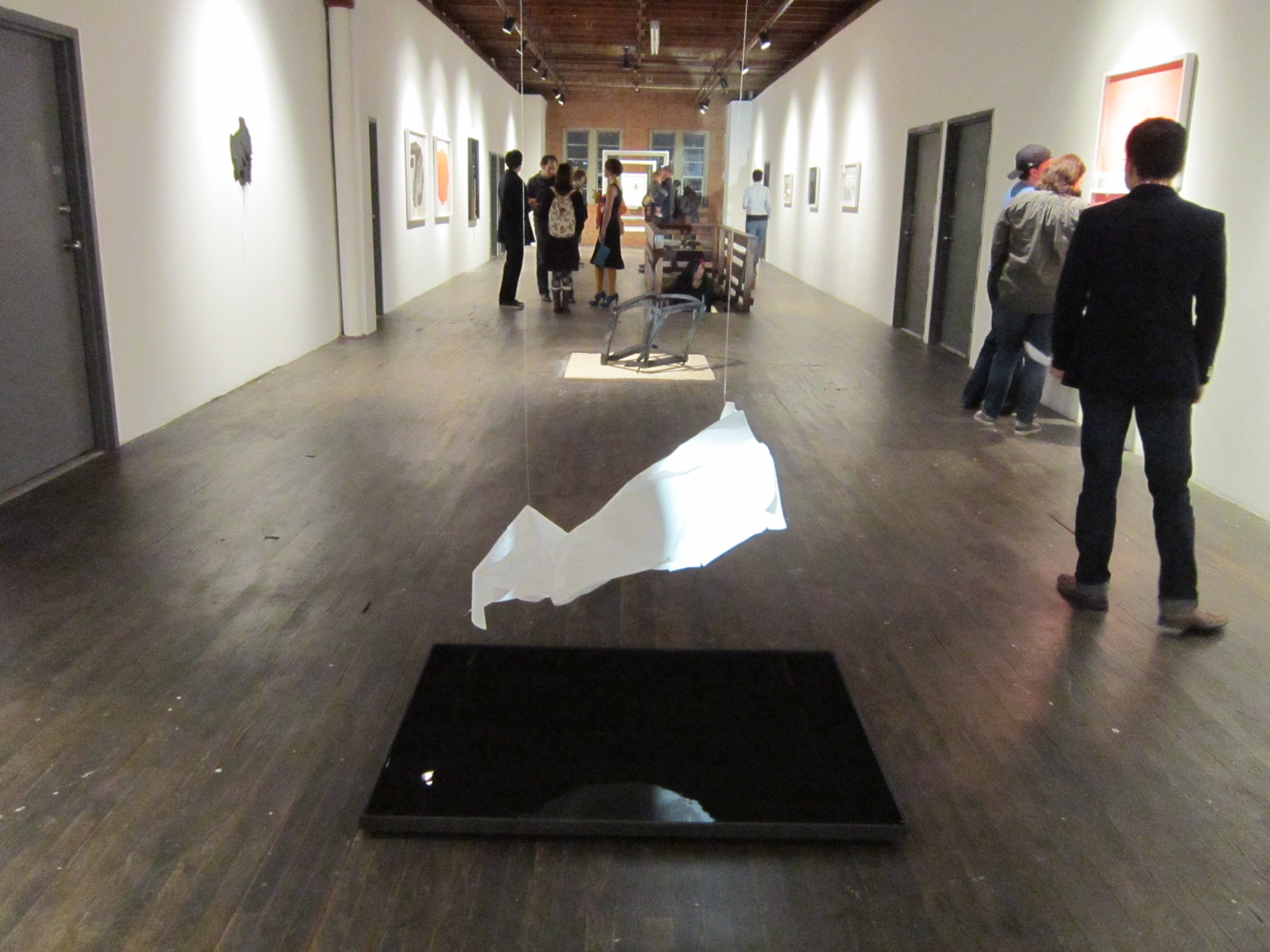 The rain almost stopped on the opening night of the current 500X gallery exhibition. At least it didn’t dampen the young vibe that is so characteristic of galleries in Deep Ellum. The fact that both Scott Hilton and John Nicholas Hutchings are art teachers attracted so many students that the overhanging Bohemian atmosphere surely kept the GCB away.