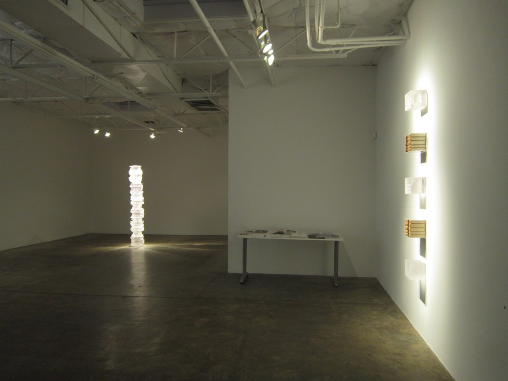 A runner-up last night was an installation work at Red Arrow Contemporary Fine Art Gallery. Seeing a moving image in the plate glass windows, I wondered if it was intended for me to go inside. It took some time to make sense of it. The video of the back end of a truck moving through a landscape was combined with silhouettes traveling across the storefront. The silhouettes were actually art patrons inside the gallery who unrealizing become part of the installation as they move in front of the projector.