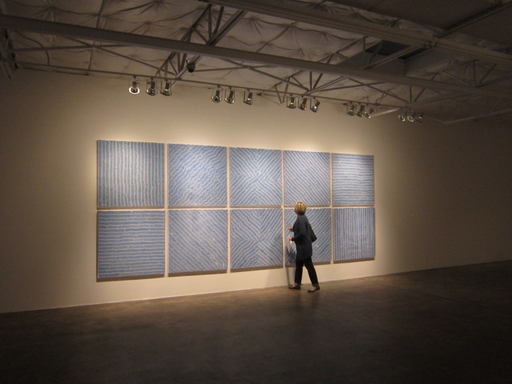 There are a few sidewalks in the Dallas Design District. Pedestrian art lovers mix with slow-moving cars as they traverse the industrial buildings during the openings, which occur here every five weeks. That doesn’t bode well for the neighborhood generally but doesn’t seem to matter during the openings.