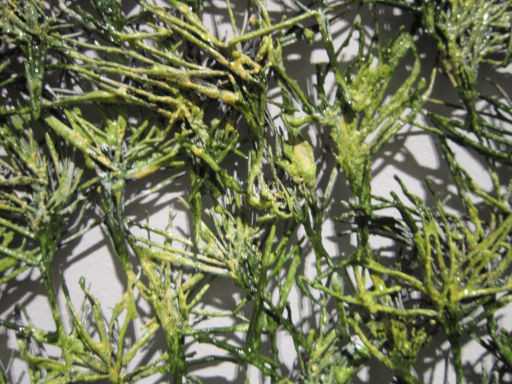 Here handwritten text makes up what the paint usually does for a picture. Although there is nothing spectacular about Daou’s calligraphy, she tears, unfurls, or scrolls paper strips in a sensual way. To some extent, some drawings are almost like a feather-light sculpture but reveal more about the process than their meanings. Maybe that is supposed to be. There is nothing wrong to be deliberately elusive, but what is not present is a communicative power that guides the intricate hands-on process into a lucid manifestation of fortune.