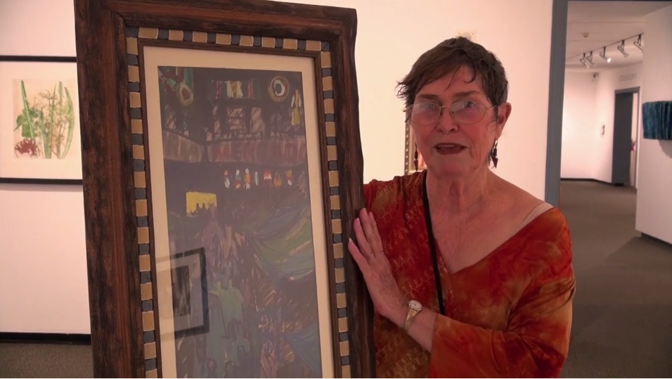 Vicky Balcou discusses her Mercado Painting from 1964 at the annual Texas Art Expo event at the Fort Worth Community Arts Center.