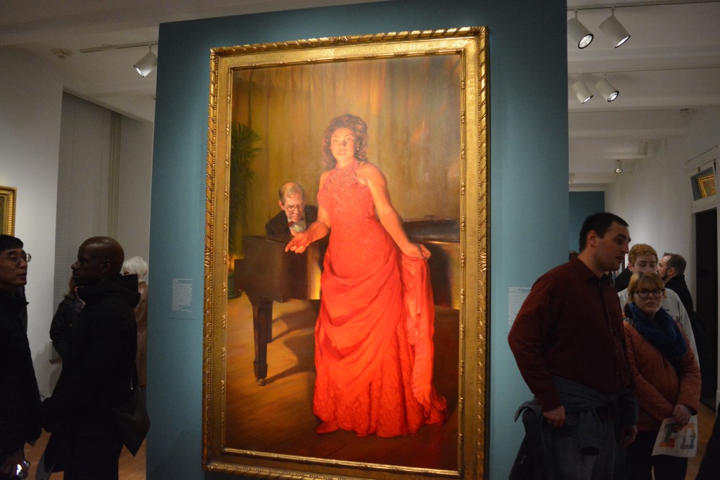 One work that stood out here was Nelson Shank’s glowing portrait of Opera singer Denyce Graves. His name was familiar from the portrait of the four female Supreme Court Justices we saw on the second floor. Nearby was a portrait attracting more attention, Michelle Obama by Amy Sherald.