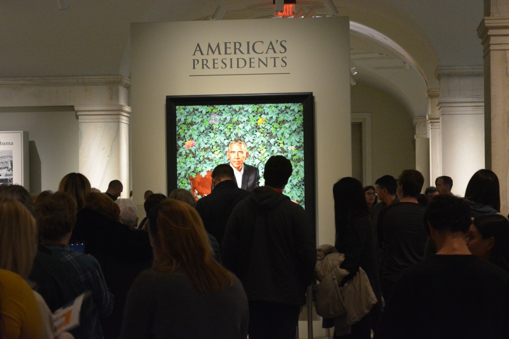 Our repeat visit here began with the presidential portraits including the one by Kehinde Wiley of Barrack Obama. A sizeable line had formed for personal photo mementos. A portrait of James Polk bore a resemblance to Mel Gibson.