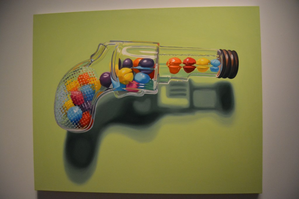 Cris Worley Fine Arts is featuring Shannon Cannings with her solo show Triggered. The subject matter – toy guns – is magnified and reimagined on large canvases with vibrant colors and lucid forms.