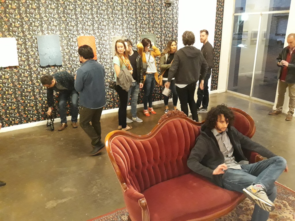 If contemporary shows have anything in common, it’s white walls. Benjamin Terry questioned this and created a site-specific installation for his Galleri Urbane show. Before I entered the gallery space, I could already see a dark wall of Victorianesque floral patterns. “That’s all from fabric.com,” Terry says. “Thirty-six yards of it.”