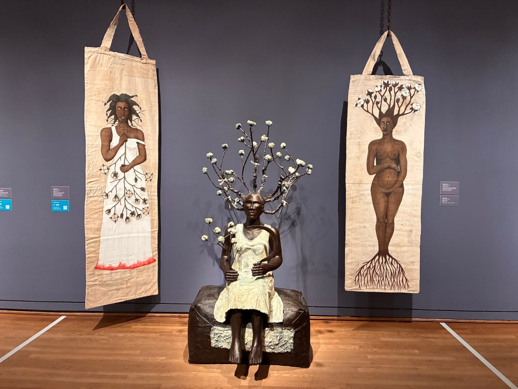 We also greeted Paul, Harry, and Cassie from Mullowney Printing in their usual spot. This year they brought a suite of linocuts by Allison Saar, works that riff on Black experience through the syncopation and improvisation of jazz. Saar’s sculptural work is currently on view just a few doors down in the museum’s main building (photo), and seeing the prints alongside that presence made the booth feel like a resonant extension of the exhibition.
