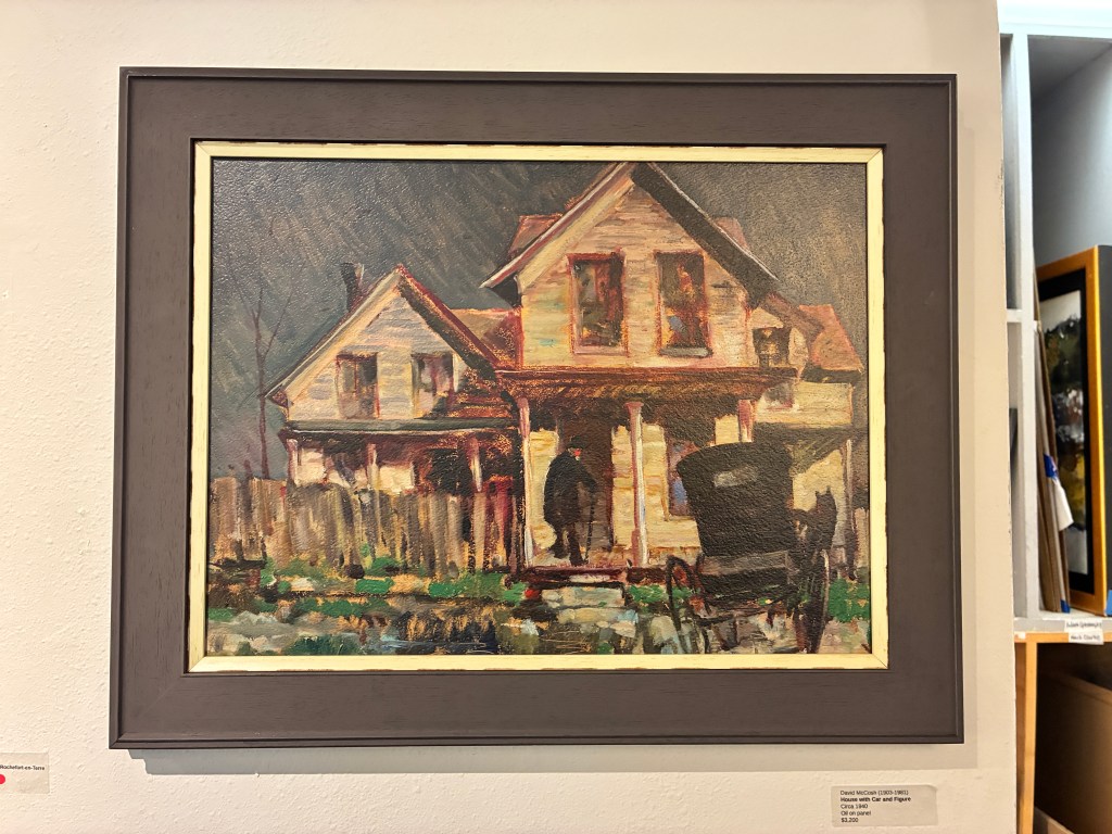 Also in the exhibition was an early painting by David McCosh from 1940, which still bears a regionalism mindset. Not far away, Tangled Growth from 1974 shows his signature style – vibrant colors and gestural lines that suggest a sense of direct observation and a spirit to capture the essence of the scene. Seeing the two works together telescopes time: one artist moving from describing a place, with tenderness, to translating the sensation of being there. The later work feels less like “a view” and more like a record of attention—how the eye moves, how the hand keeps pace, how a scene can become a set of decisions.